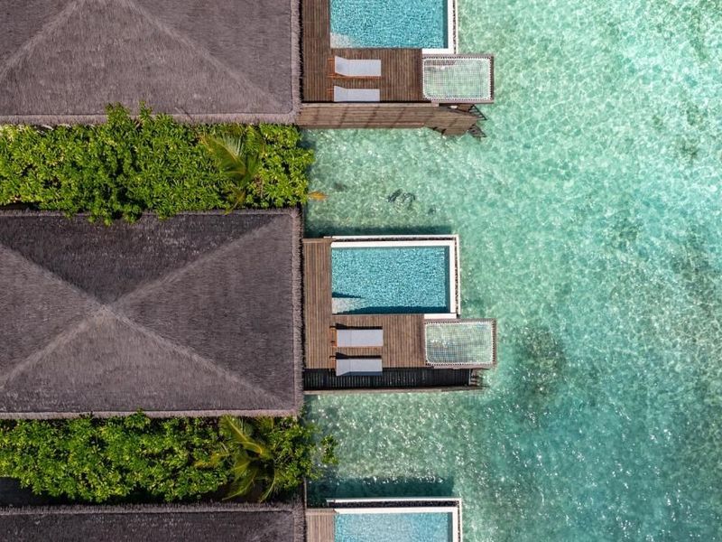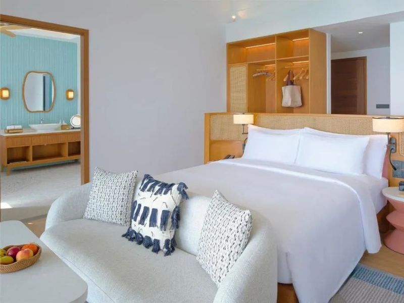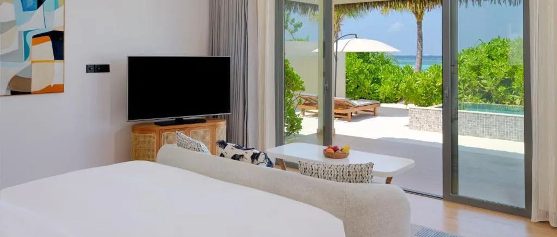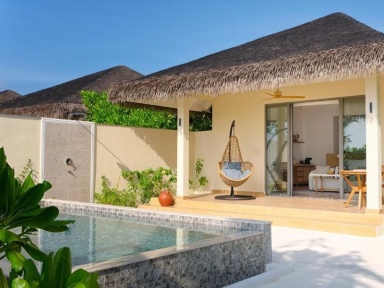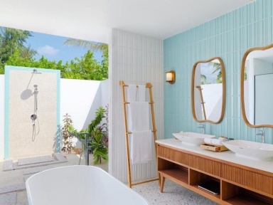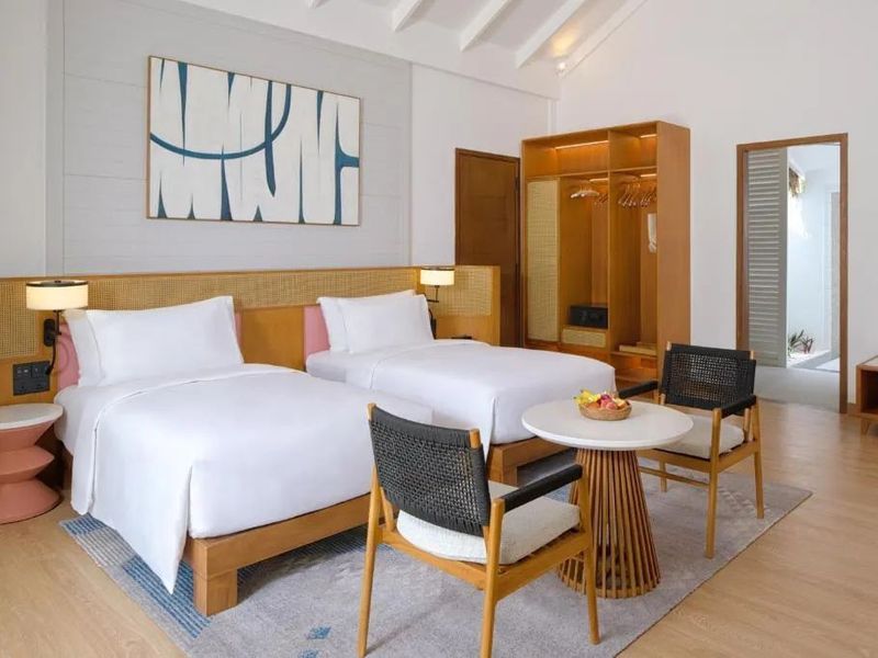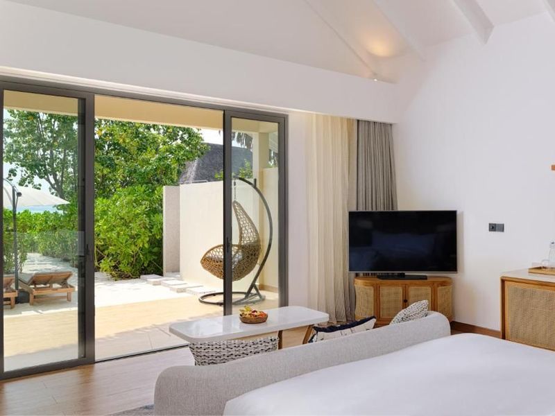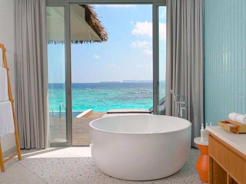 Пляжные и водные виллы просторные, с отдельной зоной отдыха и даже собственным бассейном в некоторых категориях. Для семей особенно удобны номера с отдельной детской комнатой. Уборка проводится два-три раза в день, мини-бар пополняется ежедневно. Гости отмечают высокое качество постельного белья и полотенец.