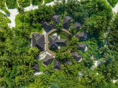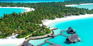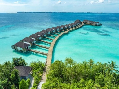 Итак, сам курорт описывают, как “Затерянный в Индийском океане”. Он находится на частном острове, до столицы Мале - 400 км. Расположено местечко на атолле Гаафу Даалу. Первое, что бросилось в глаза, так это изобилие зелени и белый, как на картинках, песок.