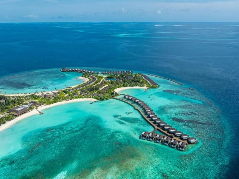 Отель расположен на острове Фейду в Северном Мале-атолле, всего в 5 км от международного аэропорта Велана. Остров компактный — 450 метров в длину и 610 метров в ширину, что позволяет легко обойти его за 15–20 минут. Благодаря такой близости к Мале, здесь нет изоляции, но при этом нет и городского шума — аэропорт не слышен, а вид на горизонте (в зависимости от стороны острова) включает силуэты барж и портовой инфраструктуры, что не мешает отдыху. Территория ухоженная, с аккуратными дорожками, тропическими кустарниками и молодыми пальмами — зелень есть, но без густых джунглей. Рядом находятся рифовые пещеры Фейду, популярные у дайверов.